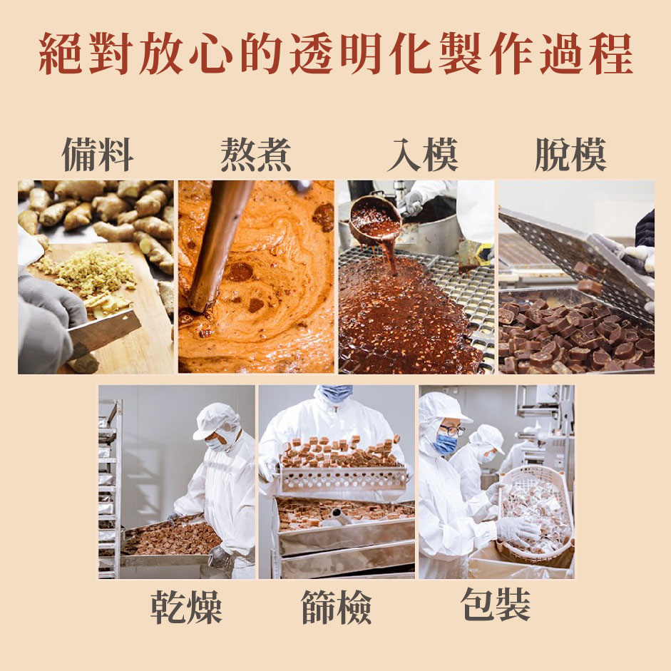 • 真材實料看得見: 每一顆糖磚都能讓您喝得到真材實料的薑碎塊,真誠無虛假。